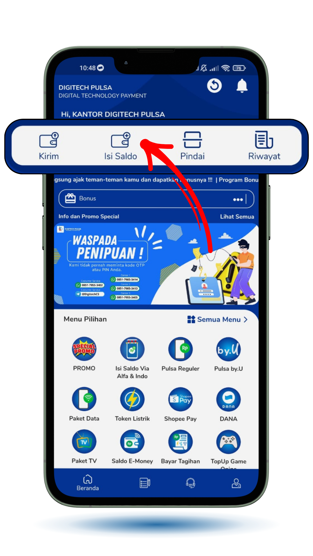 Buka menu "Isi Saldo" di aplikasi untuk memulai pengisian.