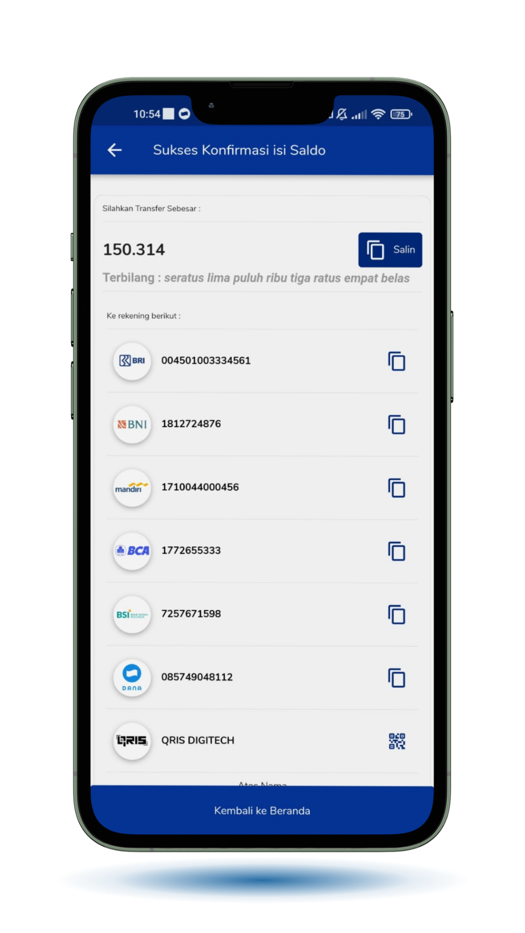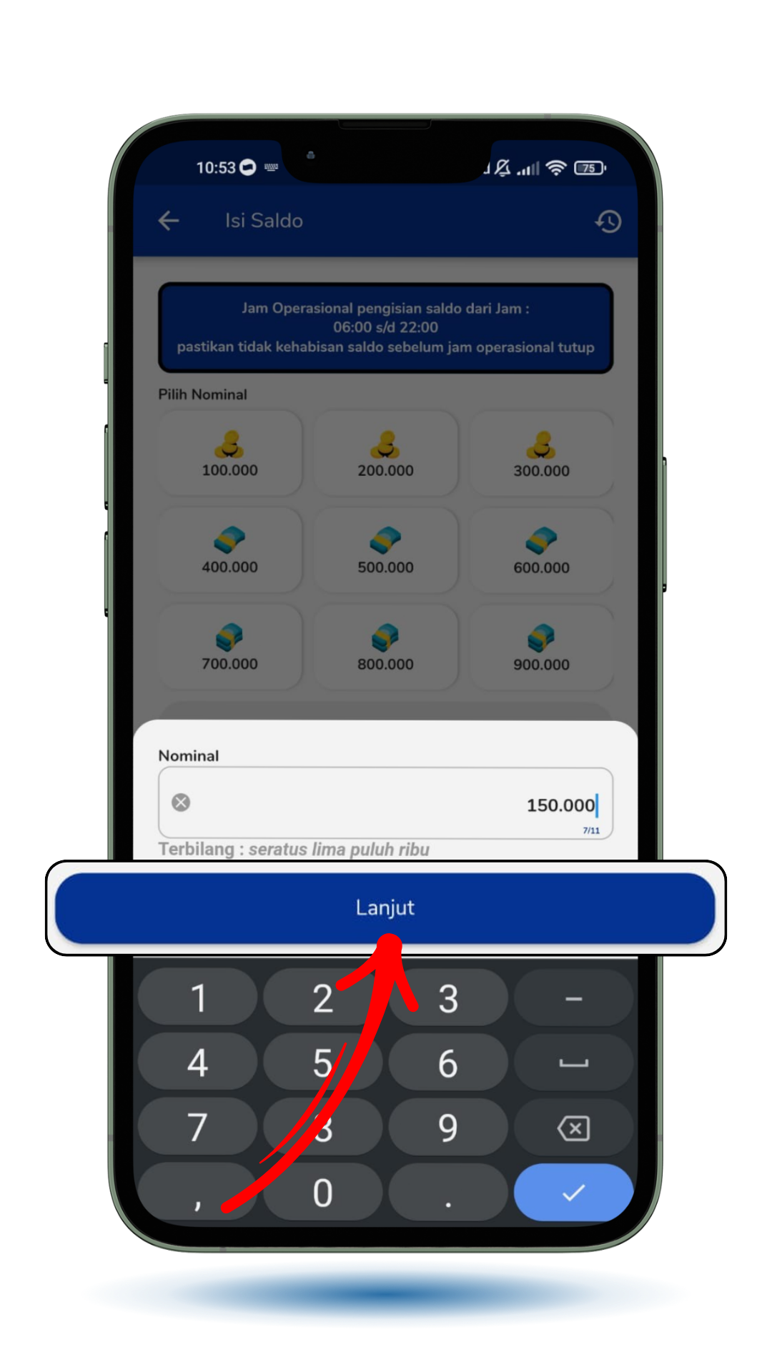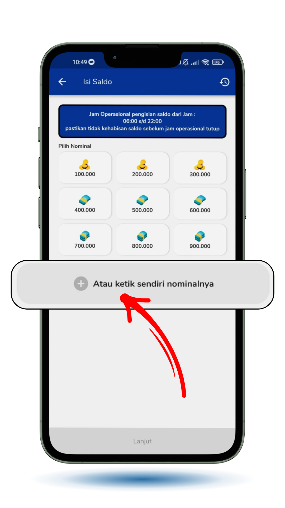 Klik "Lanjut" untuk melanjutkan proses pengisian saldo kamu.